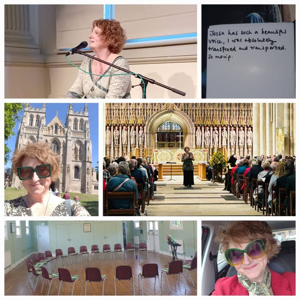 , at RURAL ARTS Thirsk and Theatre at 41 York, a joint concert with York Military Wives Choir and York Railway Institute Band , my first workshop with Romanby WI , and the chance to sing at the special 40th anniversary services for St Leonard’s Hospice at York Minster and Selby Abbey . Wigginton Primary School Singstars did me proud at the York Music Hub Choral Festival, and Easingwold Community Singers did a great job complementing my solo set at the Easingwold Summer of Music. I dusted off my violin for the live performances of ‘The Hermit 2025’ with The New Rowan Band, and sang at a lovely 80th birthday party up the road in Middlesbrough!