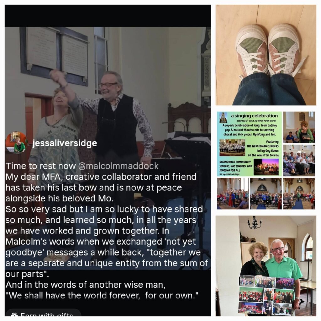 It was hard to get on with things after this, but of course I had to. I put on the ‘singing celebration’ event with the help of my singers and the wonderful visiting choir New Egham Singers , and together we created an evening of community and connection, including my own personal tribute to Malcolm, ‘Alfie’.